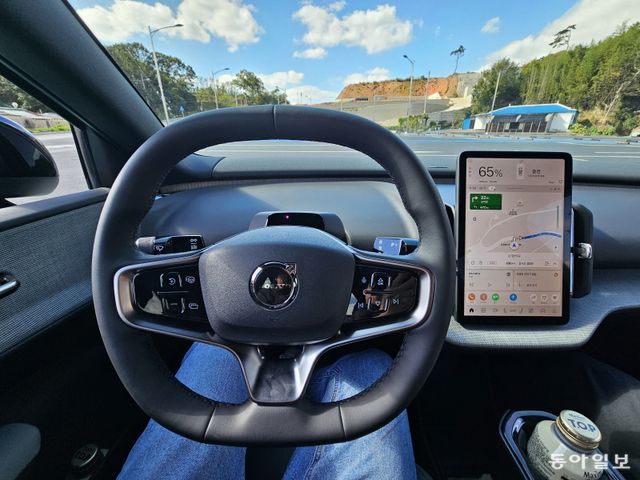 12.3인치 세로형 디스플레이 하나로 모든 기능을 통합한 미니멀리즘 실내 디자인이 깔끔하지만 물리 버튼에 익숙한 운전자는 조작에 어려움을 느낄 수 있다. 보령=김재형 기자 monami@donga.com