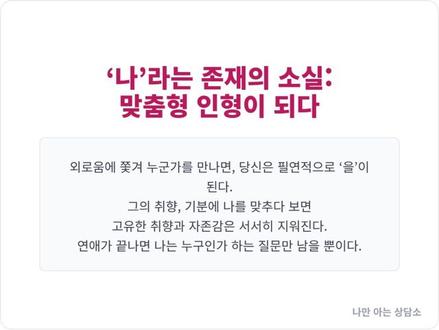 The post 20대 연애, 사랑일까 외로움일까? ‘필요해서’ 하는 연애의 함정 appeared first on 나만 아는 상담소.