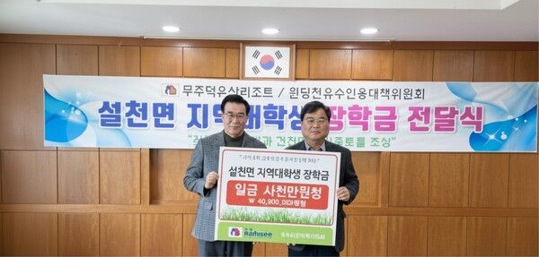 무주덕유산리조트 관계자는 "작은 정성이지만 이 장학금이 학생들의 꿈을 이루는 데 소중한 마중물이 되기를 바란다"며 "앞으로도 무주덕유산리조트는 지역 사회의 그늘진 곳을 살피고, 지역민과 함께 호흡하며 따뜻한 나눔을 실천하는 향토 기업으로서의 책임을 다할 것"이라고 말했다.