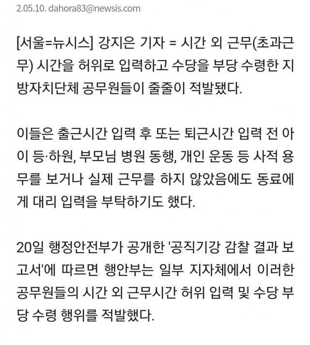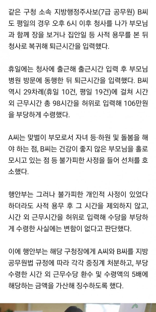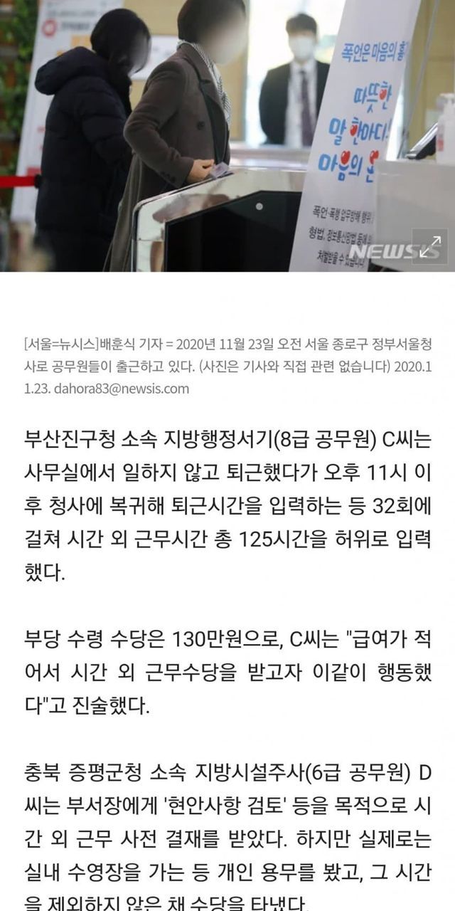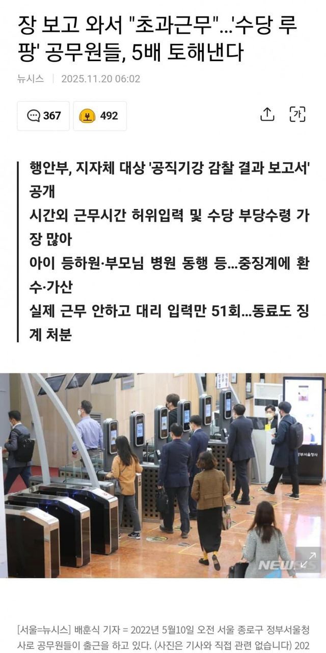 거짓 초과 근무로 월급 루팡하는 공무원들, 5배로 토해낸다