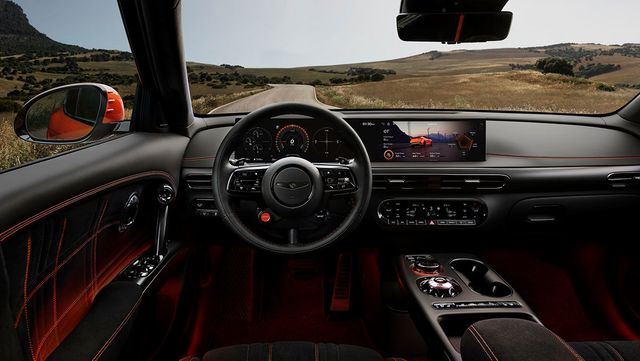 실내는 사뮤드 소재를 기반으로 마그마 전용 스티치와 퀄팅, 시트벨트 등을 적용해 차별화했다. 버튼과 스위치는 블랙 하이글로시, 또는 다크 메탈로 마감했으며, 스티어링 휠에는 블랙 엠블럼과 전용 드라이브 모드 버튼이 배치됐다. 또한 마그마 전용 파워 10-Way 버킷시트가 적용돼 스포티한 주행 시 신체 지지력을 확보하면서도 열선, 통풍, 메모리, 쿠션, 익스텐션 기능을 사용할 수 있다.