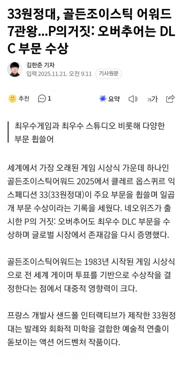 참고로 매년 GJA 총투표수는 400만 정도인데 작년은 1200만 이였다고함