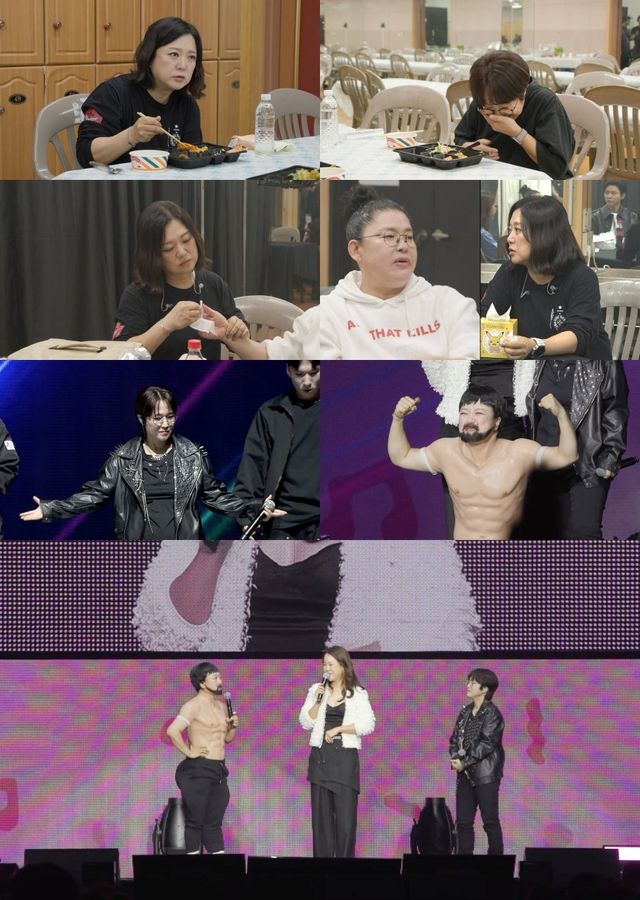 ‘비보쇼 with Friends’ 공연 현장도 공개된다. 전석 매진을 기록한 이번 공연에서 송은이와 김숙은 백지영의 ‘내 귀에 캔디’ 무대를 패러디한 변신으로 관객의 시선을 사로잡는다. 송은이는 ‘짭택연’ 콘셉트로 랩을 선보이고, 김숙은 ‘머슬킹 근육숙’으로 등장해 강렬한 비주얼을 완성했다.