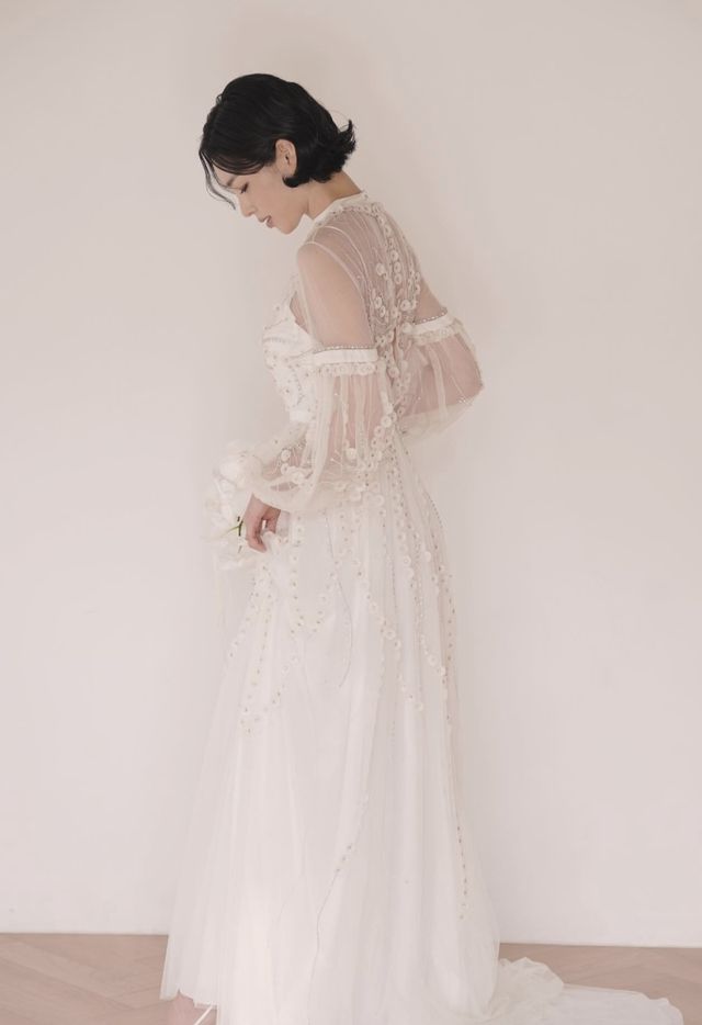 조혜원의 단독 사진도 인상적이다. 조혜원은 칼단발과 컬이 들어간 헤어스타일로 변화를 주며 다양한 포즈로 웨딩화브를 선보여 눈길을 끌었다.