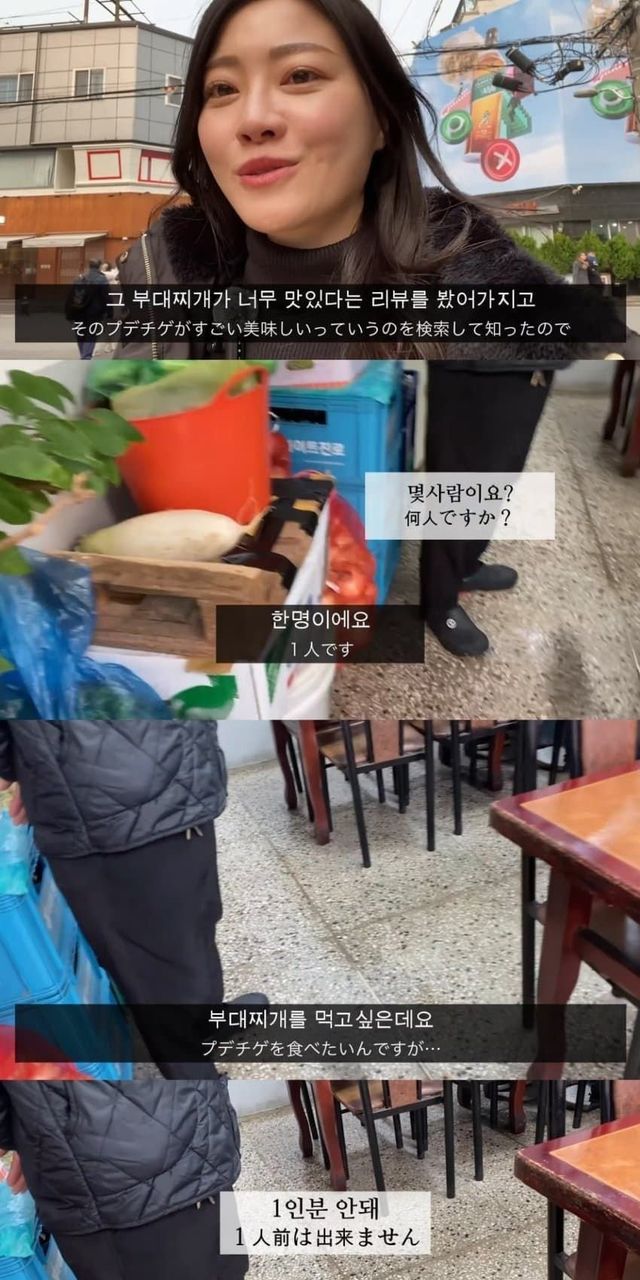 혼자 부대찌개 먹으러 간 일본 유튜버 누나
