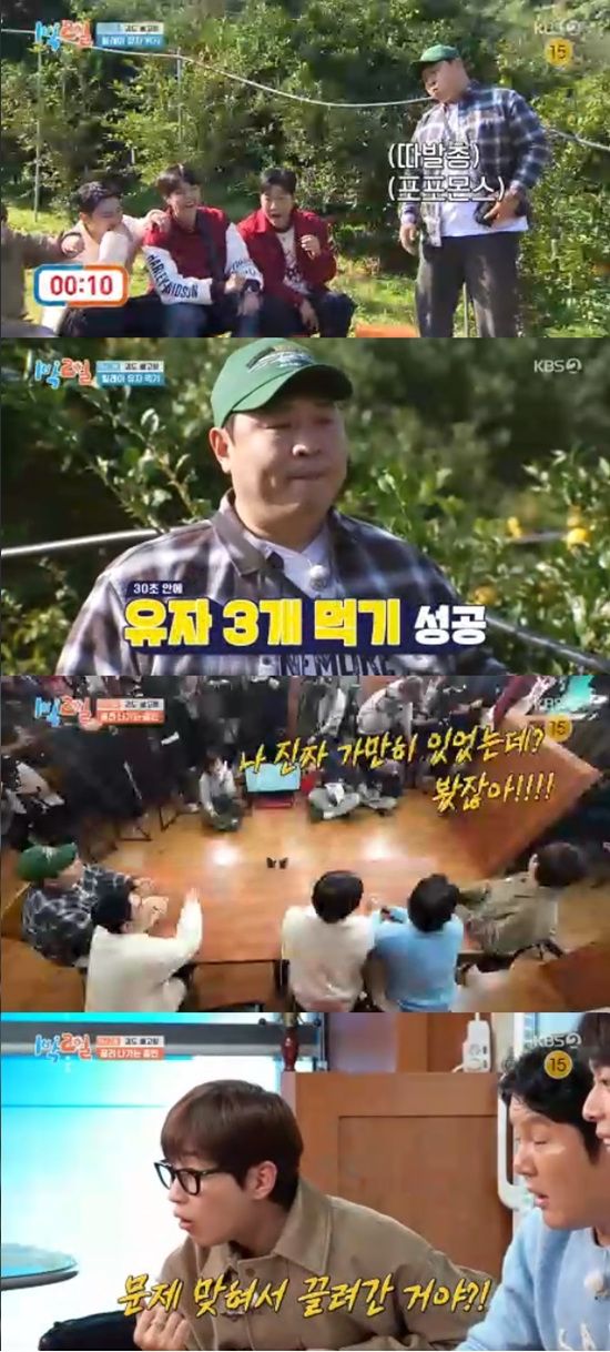 문세윤은 30초 안에 유자 3개 먹기에 성공하며 멤버들에게 유자차를 안겼다.