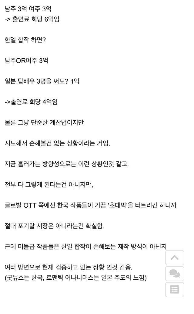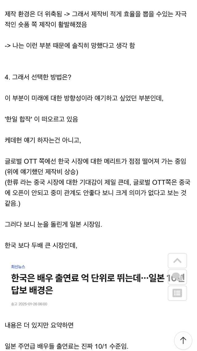 결과: 비용절감 차원에서 일본과의 합작 늘어남 (실제로 반응도 괜찮아서 넷플 등 ott의 전략이 한일합작으로 변화되는중)