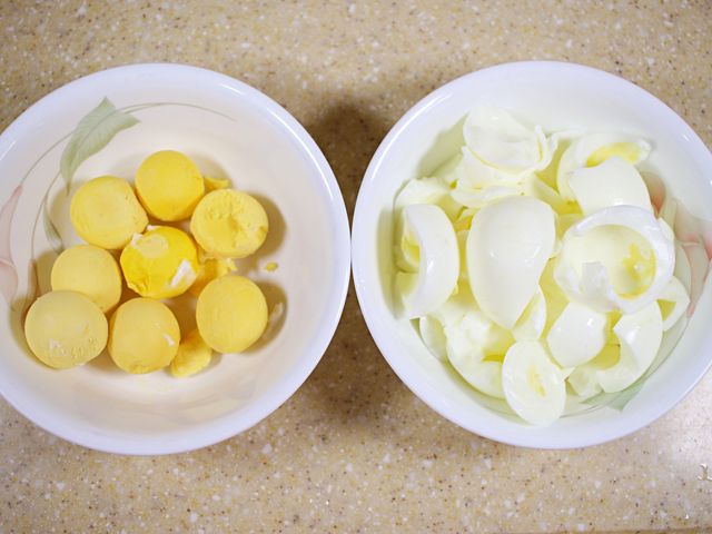 완숙으로 삶은 게란을 흰자와 노른자 분리해주세요.