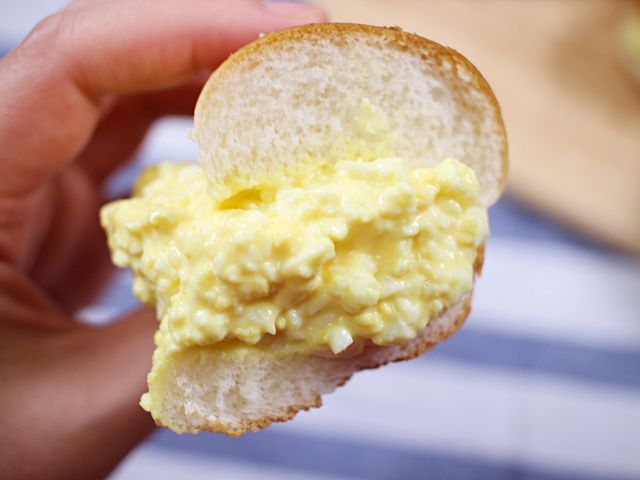 한입 크게 먹으면 계란샐러드가 입안을 꽉 채우면서