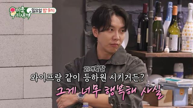 이어 딸의 모습도 최초 공개했다. 이승기가 딸 영상을 자랑한 것. 이를 본 신동엽은 "아오 귀여워"라며 '삼촌 미소'를 지었다.