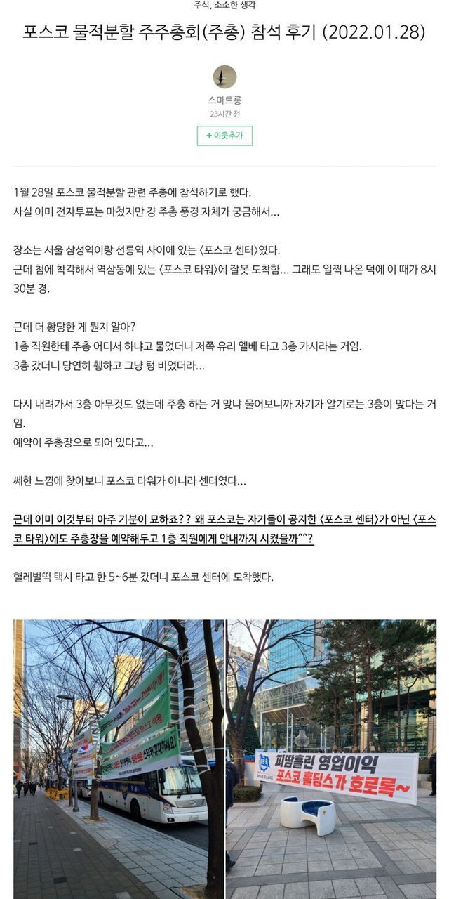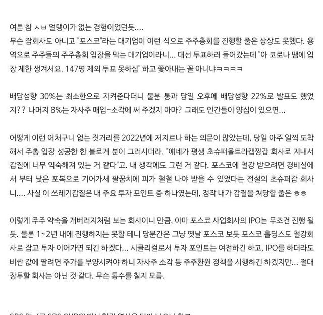물적분할을 다루는 중요한 주총이었는데 건물앞에 경비세우고, 다른 건물로 잘못 안내하고 이런식으로 주주들 못들어가게 막음