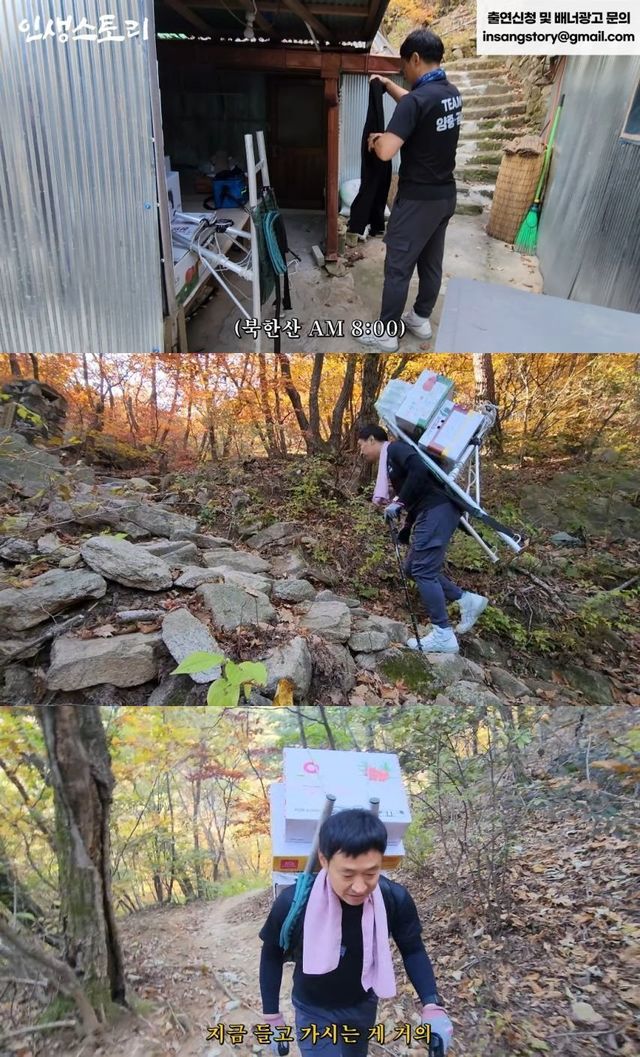 하루에 3~4번 40~50kg 되는 짐을 짊어지고 절까지 왕복한다고함