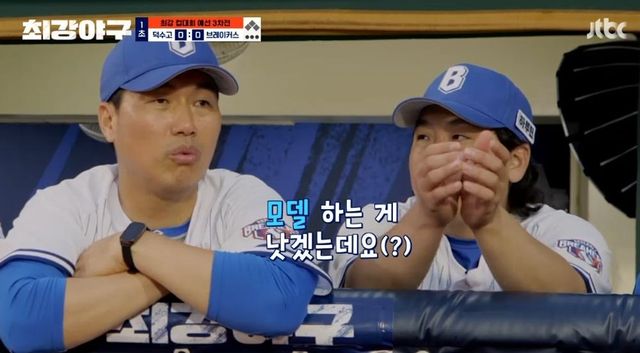 이날 기아 타이거즈의 지명을 받은 박종혁이 톱타자로 타석에 선 가운데 브레이커스 선수들은 박종혁의 수려한 미모에 주목했다.