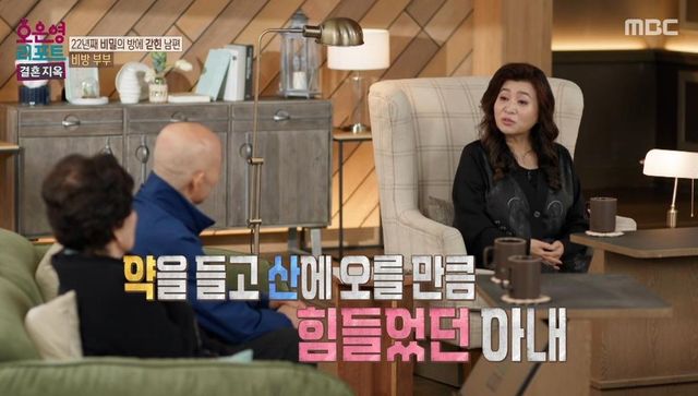 24일 방송된 MBC ‘오은영 리포트-결혼 지옥’에서는 22년간 자신만의 은밀한 취미에 빠져 모든 것을 잃어버린 남편과 그로 인해 깊은 상처를 안고 살아온 아내, 78세 동갑내기 ‘비방 부부’의 이야기가 공개됐다.