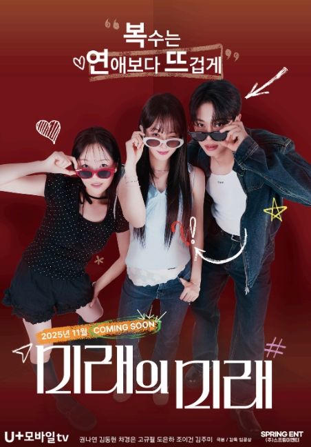 '미래의 미래'는 MZ 세대를 대표하는 공미래(권나연 분)가 첫사랑의 환상에서 완전히 벗어난 후 진정한 자아를 찾아가는 청춘의 감정 성장기를 다룬 작품. 공미래가 첫사랑의 바람으로 배신을 겪은 뒤 영화 동아리 '팝콘각' 친구들 이현재(김동현), 오민실(차경은)과 함께 복수 프로젝트 '복.연.뜨'를 진행하며 청춘들의 성장통을 그려낼 전망이다.