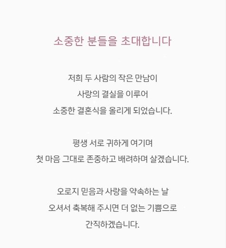 소중한 분들을 모시고 소중한 결혼식을 올리게 되었습니다.