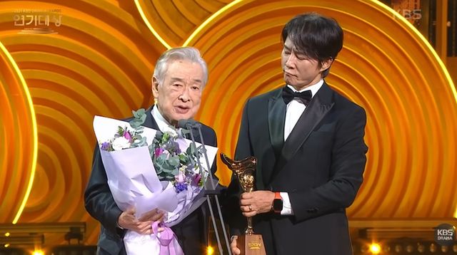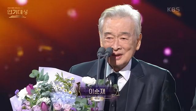 지난 1월 KBS 연기대상에서 이순재는 대상을 차지하며 역대 최고령 수상자로 기록됐다. 대상 수상자로 호명되자 그는 후배 배우 김용건과 최수종의 부축을 받아 무대로 향했다. 이날 참석한 모든 후배 배우와 관객들은 모두 자리에서 일어나 그에 대한 존경을 표했다.
