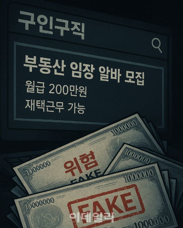 [이데일리 성주원 기자] 2023년 11월, 구직 사이트를 뒤지던 A씨(51)의 눈에 매력적인 공고가 들어왔다. ‘부동산 사전조사, 재택근무 가능, 월급 200만원’. 경제적으로 어려운 상황이었던 A씨는 망설임 없이 지원했다. 면접도 없이 메신저로 근로계약서만 주고받았지만, A씨는 의심하지 않았다.