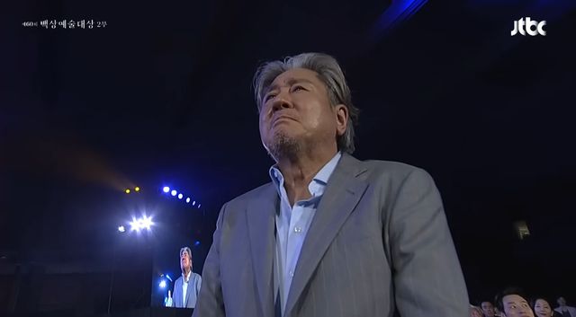 이병헌에게는 "우린 액션을 해야 하는데 이 나이에 치고 받을 순 없고, 한국판 '대부'를 하자"며 "내가 말론 브랜도 역할을 하고, 우리 이병헌 배우가 알 파치노 역할을 하면 잘 어울릴 것 같다. 언제 한 번 그런 걸 기획해보자"고 제안해 웃음을 자아냈다. 눈시울을 붉힌 이병헌은 미소를 띤 채 박수를 보냈다.