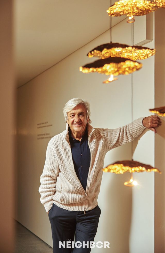 서울 신사동 더쇼룸에서 이탈리아 조명 브랜드 카텔라니&스미스의 국내 첫 전시 <빛을 조각하는 시간>이 11월 7일부터 28일까지 열린다. 1989년 이탈리아 북부 베르가모 인근에 설립된 이 브랜드의 역사는 흥미롭다. 조명 상점을 운영하던 엔초 카텔라니(Enzo Catellani)는 독학으로 조명을 설계했고, ‘투르치우(Turciù)’ 시리즈의 프로토타입이 독일 바이어의 눈에 띄어 1989년 프랑크푸르트 소비재 박람회에서 폭발적 호응을 얻었다. 그리하여 같은 해 카텔라니&스미스를 설립하기에 이른다. 여기서 ‘스미스’는 카텔라니의 경주마였던 로건 스미스의 이름을 붙인 것이다. 이후 “빛은 직접적이거나 눈부셔서는 안 된다”는 철학 아래 수작업으로 조명을 제작해온 카텔라니&스미스는 주위 환경과 어우러지며 신비로운 분위기를 조성하는 제품들로 사랑받았고, 대표 작품 ‘필 데 페르(Fil de Fer)’가 2010 상하이 엑스포 이탈리아관에 전시되었다. 이번 전시를 위해 한국을 방문한 창립자 엔초 카텔라니를 만났다. ‘빛의 시인’이라는 별명에서 예상한 모습과 달리 장난스러운 미소를 간직한 그의 눈빛은 아이의 눈처럼 반짝였다.