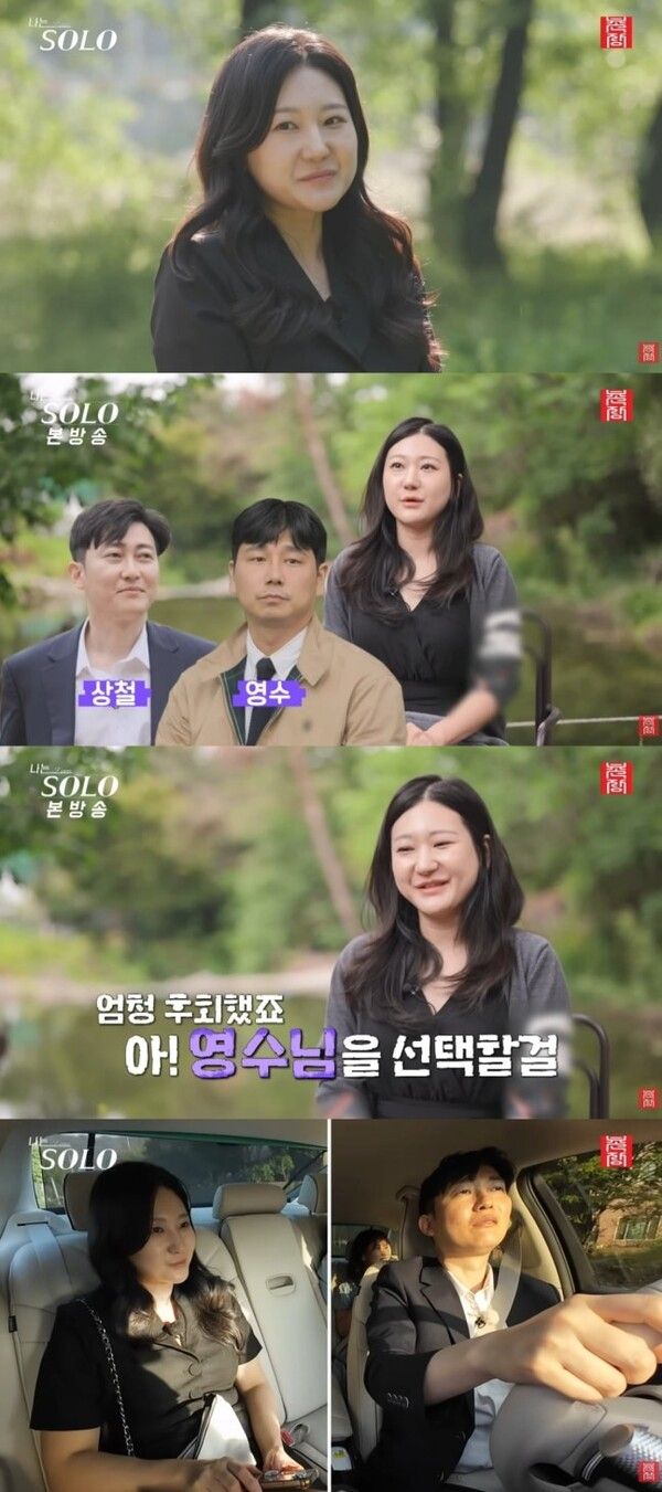 정숙은 첫인상 선택을 상철에게 했기 때문에 결국 상철이 운전하는 차에 타야 하는 상황이 벌어졌다.