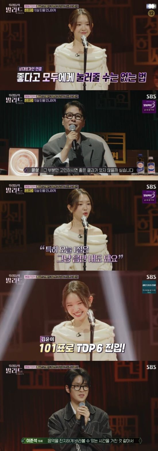 25일 방송된 SBS 예능 프로그램 '우리들의 발라드'에서는 '헌정 발라드'를 주제로 파이널에 진출할 TOP 6를 가리기 위한 치열한 경쟁이 펼쳐졌다.