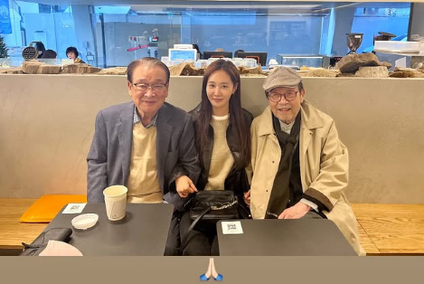 그런가 하면 또다른 앙리 역으로 함께한 신구와 이순재 사이에서 팔짱을 낀 사진을 게시하면서는 기도하는 이모티콘을 달았다. 신구는 지난 2023년 심부전중 투병을 고백하며 “심장 속에 박동기를 넣는 시술을 받았다. 박동기가 심장이 일 분에 몇 번 뛰도록 맥박수를 조절한다”고 밝힌 바, 그의 호전 또한 기도하는 모습이다.