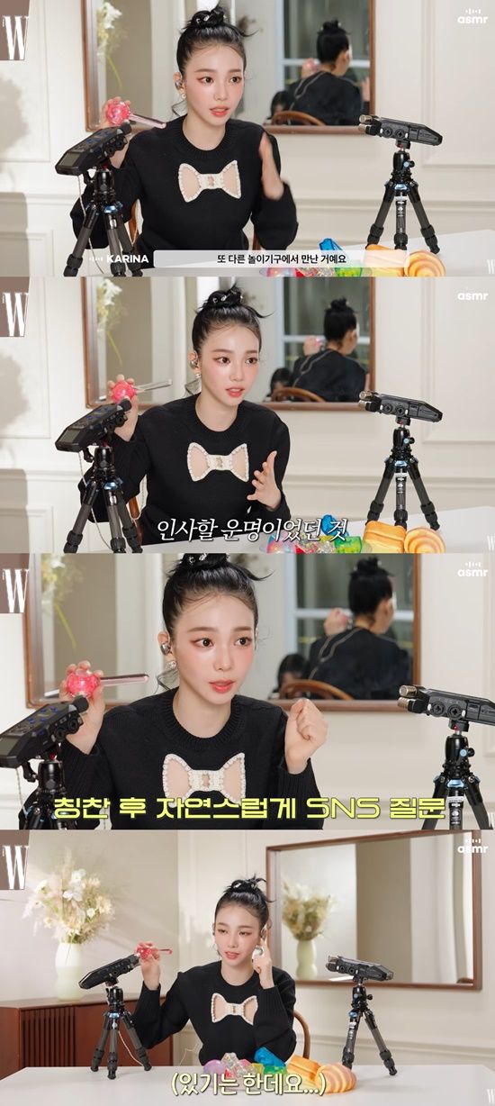 지난 25일 W 코리아 유튜브 채널에는 *'에스파 카리나가 메이크업하다 웃음 터진 이유는? 카리나 ASMR에는 감동이 있다'*라는 영상이 업로드됐다.