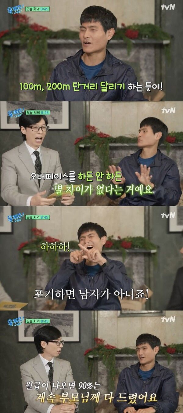 심진석은 "5일 연속 풀코스로 뛴 적 있다"며 "포기하면 남자가 아니다"라고 말한다.