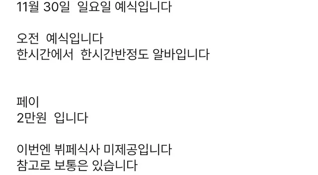 "결혼식 뷔페 제공 여부"