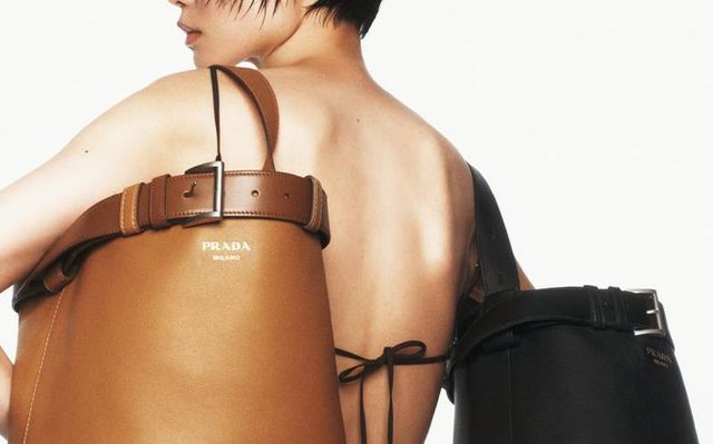 파우치가 달린 미디엄 리나일론 백팩과 로봇 사피아노 레더 백 참은 모두 Prada.