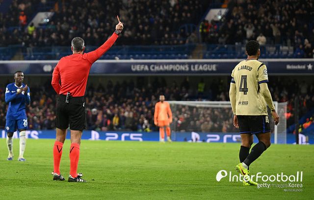 ‘주장’ 아라우호의 퇴장 변수가 치명적이었다. 전반 39분 항의 과정에서 경고를 받았던 아라우호는 5분 뒤인 전반 44분 첼시의 마크 쿠쿠레야를 향한 뒤늦은 태클로 두 번째 경고를 받았다. 결국 그는 경고 누적으로 레드카드를 받아 그라운드를 떠나야 했다.