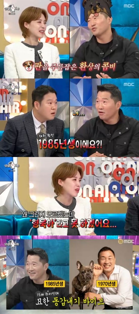 그러면서 강형욱은 "그리고 장도연 씨와 동갑이다. 85년생"이라고 했고, 모두가 놀랐다. 장도연은 "촬영하면서 시간을 많이 보냈는데, 왜 그런지 모르겠는데 '형욱아'라고 못 하겠더라"고 말해 웃음을 자아냈다.