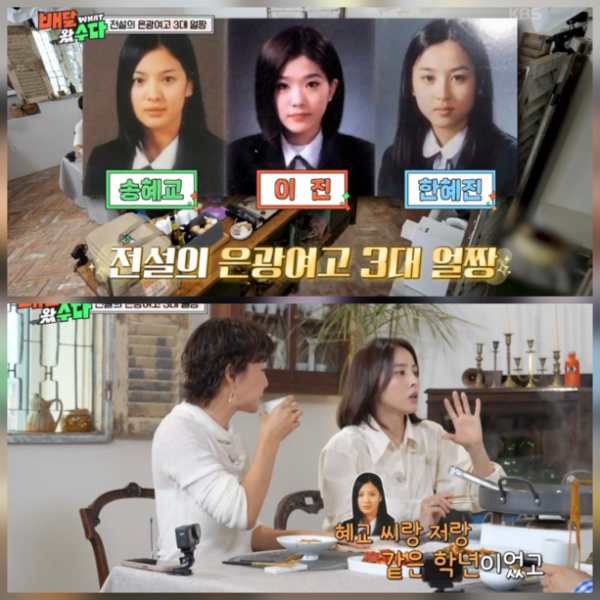 이영자와 김숙은 "은광여고 3대 얼짱 아니었느냐"며 한혜진, 송혜교, 이진을 언급했고, 한혜진은 "혜교 씨와 나는 같은 학년, 이진 선배님은 한 학년 위"라며 세 사람의 인연을 설명했다.
