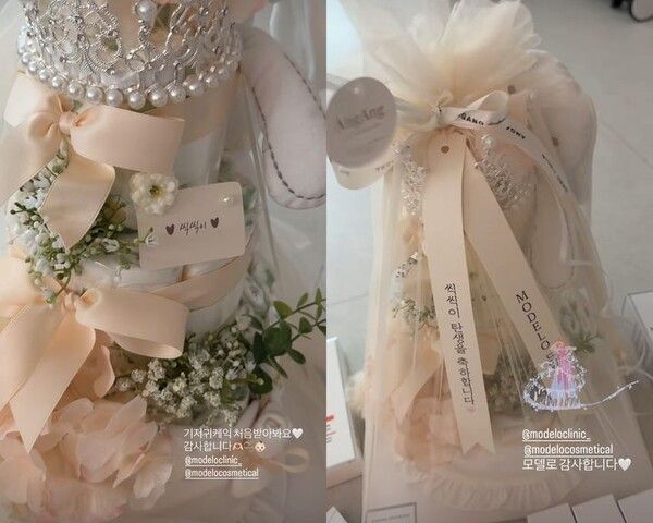 이시영은 "기저귀 케이크 처음 받아봐요. 감사합니다"라는 글로 감사의 마음을 전했다.