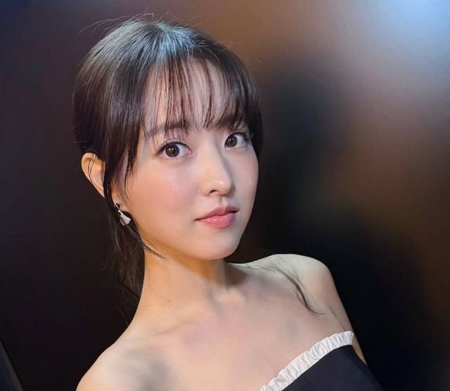 우아한 곡선의 미학, 에스파 카리나의 고혹적인 블루 골지 드레스 룩