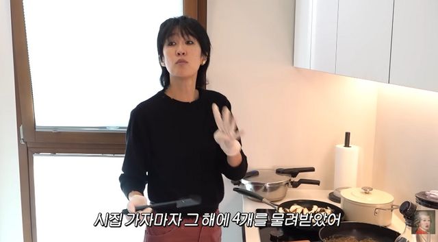 손님 초대를 위해 분주하게 음식을 준비하던 홍진경은 자연스럽게 자신의 결혼생활을 회상했다. 그는 “나 생긴 거에 비해 요리 좀 알지 않냐”라며 말문을 열었다. 홍진경은 “제사를 1년에 4번 지냈다. 시집가자마자 그해에 4개를 물려받았다. 시어머니가 딱 놓으셨다. 그니까 나를 믿으신 거다”라고 털어놨다. 이어 그는 “제사 일주일 전부터 잠이 안 올 정도였다”라며 “그래서 나는 제사 음식으로 다져진 사람이라 보통 양은 무섭지가 않다”라고 말했다.