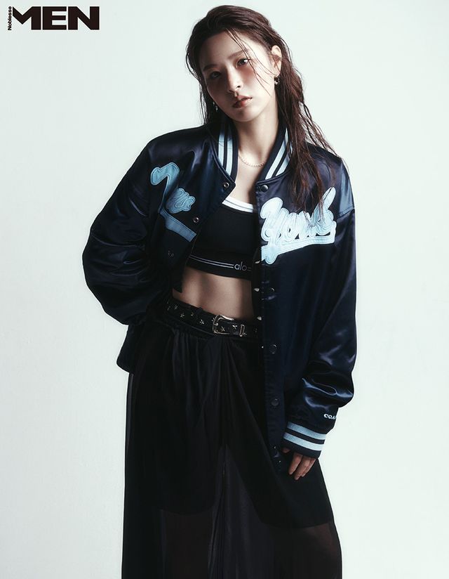 보머 재킷 Coach, 레이어드 브라톱 Alo, 레이어드 스트라이프 쇼츠 모두 Isabel Marant, 레이어드 스커트 Ports 1961, 벨트와 네크리스, 이어링 모두 스타일리스트 소장품.