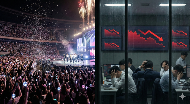 케이팝이 구조적으로 성장 국면에 진입했지만, 국내증시에서 엔터테인먼트 기업들의 주가는 역사적 밸류에이션 저점 구간까지 도달한 상황이다. ⓒ 제미나이 생성 이미지