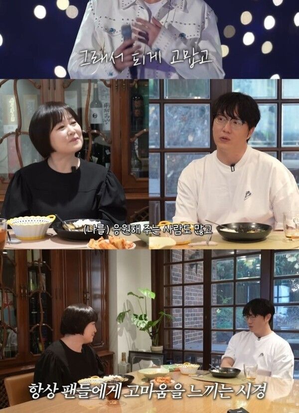 이어 "이제 느끼는 거야. 진짜 내가 응원해주는 사람도 많고. 긴 시간 성공적으로 노래를 해왔다는 뜻은 내 연예계 커리어와 같이 섞여있는 거다. 자기 청춘과. 그게 되게 큰 힘이 된다"며 "내가 받고 있는 응원의 무게와 힘을 모르는 사람은 아닌 거고, 고맙고 그러니까 또 연말 공연도 잘해보고 싶고 그런 것"이라고 답하며 재도약 의지를 다졌다.