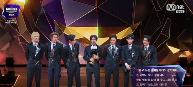 정원은 “사실 데뷔하고 살면서 뭔가 이렇게 바란 게 처음인 것 같다. 정말 감사하다. 말로 표현할 수 없는데 정말 감사드리고, 엔진(팬덤명)이란 이름 정말 자랑스러울 수 있게 앞으로도 멋진 모습 많이 보여드리겠다”고 밝혔다. 이어 “방시혁 PD님 저희를 하나의 상품, 사업적 시선이 아닌 멤버 한 명 한 명 사람으로 존중해주시고 좋은 사람이 될 수 있게 인도해주셔서 감사하다”고 전했다.