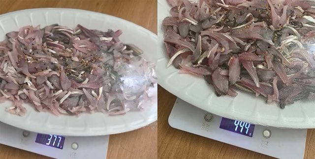 집에 와서 무게를 재보니 양이 크게 부족했다. 사장에게 전화해 수율이 어떻게 되느냐고 묻자 옆 실장에게 물어보고는 참돔은 40%, 전어는 50%라고 답했다. 소비자가 중량이 너무 적다고 얘기하자 "머리가 크면 그럴 수 있다"는 답변이 돌아왔다.