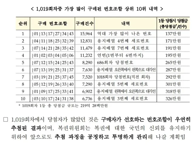 이 조합들로 사서 1등 되면 몇백만원밖에 받지 못하니 위 조합들은 피하도록 하자