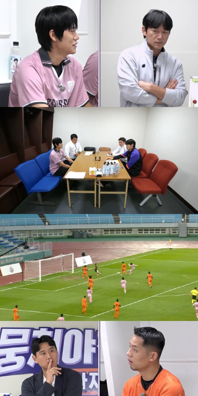이날 경기를 앞두고 김남일 감독은 최근 경기에서 단독 플레이를 보였던 싹쓰리의 스트라이커 박승훈을 감독실로 호출한다. 그는 박승훈에게 “주전 공격수인데, 감독과 코치진의 요구와 다른 플레이를 한 이유가 있냐”라며 빠따(?) 모드에 돌입해 박승훈을 진땀 흘리게 만든다. 이에 감코진과 박승훈의 미팅에서 어떤 이야기가 오고 간 것인지 궁금증을 자아낸다.