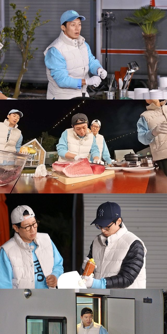낭만 숙소에 흠뻑 반한 것도 잠시, 멤버들은 울리는 배꼽시계를 느끼고 저녁 식사 준비에 돌입했다. 바리바리 들고 온 신선한 통영 식재료 중에서도 특히 참치 양식장에서 받아온 생참치 덩어리의 황홀한 비주얼이 눈길을 끌었는데 식재료의 축복에 '런닝맨 공식 요리사' 양세찬과 자칭 '이연복 왼팔' 허경환은 물론, '요.알.못' 멤버들까지 요리 욕심을 불태우며 일명 '런마카세'에 도전했다.