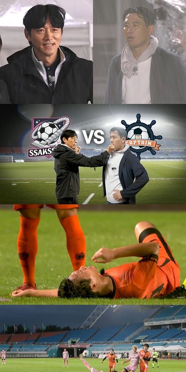 오늘(30일) 방송되는 JTBC 대표 스포츠 예능 '뭉쳐야 찬다4'(연출 성치경 / 작가 모은설 / 이하 '뭉찬4') 34회에서는 김남일 감독의 '싹쓰리UTD'와 구자철 감독의 'FC캡틴'이 정면 승부를 벌인다. 예상치 못한 폭우 속 경기에 사상 초유의 사태가 발생한다고 해 기대감을 모은다.