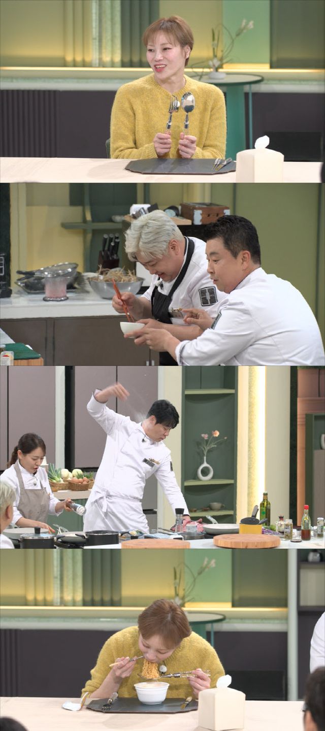 한편, 시식에 나선 입짧은햇님은 엄청난 열정을 선보인다. 특대 사이즈의 전용 수저를 공개하자 셰프들은 “밥주걱 아니냐?”라는 감탄 섞인 반응을 보인다. 두 번째 대결을 앞두고는 “다음 요리를 위해 양치를 해야 한다”며 컵라면 먹방으로 입안을 재정비한다. 또 자신의 냉장고에서 섞박지까지 꺼내 곁들여 먹는 야무진 먹방으로 모두를 홀리게 한다.