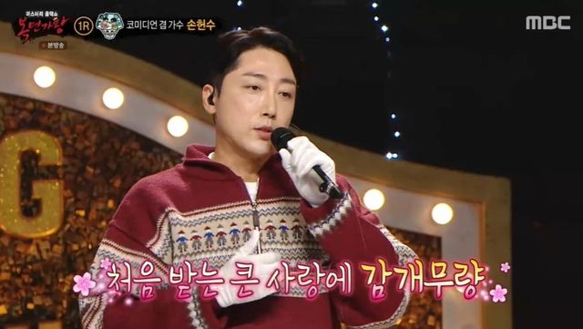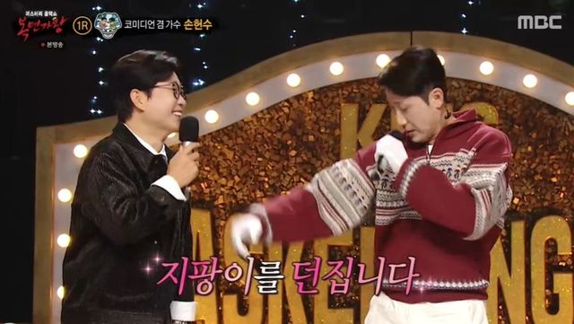 이날 크루셜 스타, 베이비돈크라이 이현의 정체가 공개된 가운데, ‘베개 싸움’과 ‘눈싸움’의 대결이 펼쳐졌다. 눈싸움은 ‘재래시장의 BTS’인 손헌수였다. 11장의 앨범을 냈다는 손헌수는 박휘순, 오정태, 오지헌이 부른 ‘못생겨서 죄송합니다’도 직접 작곡했다고 밝혔다. 손헌수는 “올해 3월에 나온 곡인데, 행사를 90개나 했다”라며 행사를 섭렵했다고 했다.