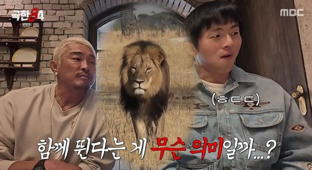 기안84는 한술 더 떠 “사자와 1대1 되겠나”라고 물었고, 추성훈은 “말도 안 되는 소리하지 마라. 내가 어떻게 사자를 이기나. 되겠나”라며 황당해했다.