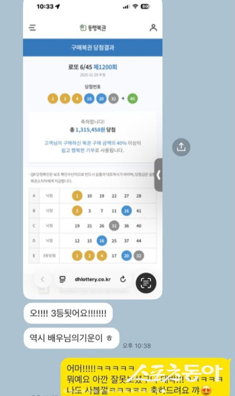 메시지에서 매니저가 “3등 됐어요. 역시 배우님의 기운이”라고 하자 박하선은 “나도 사볼걸. 축하드려요”라고 화답해 훈훈함을 더했다.